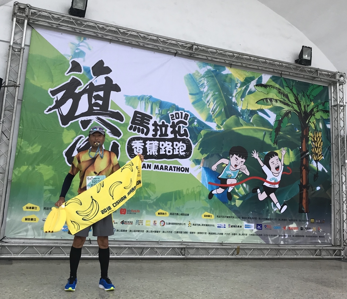 (2018年バナナ畑の中もマラソンコースに設定されている思い出深い大会。バナナ柄のTシャツを着てと疑似バナナをぶら下げてのプチコスプレで出走した思い出深い"香蕉馬拉松"大会。)